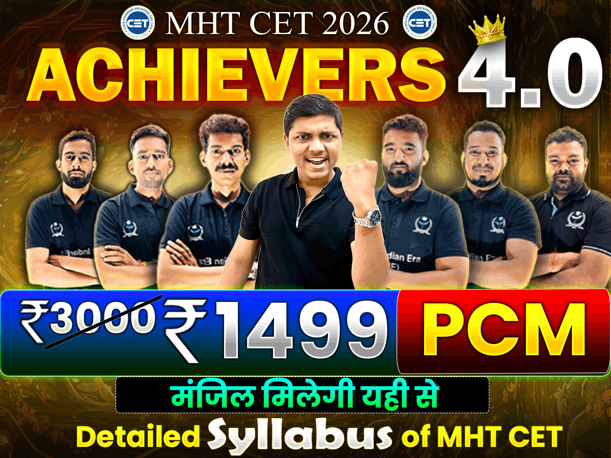 💪[PCM] Achievers 4.0 - MHT CET Crash Course Achievers Batch 4.0 is Most powerful Batch for MHT CET Entrance. "Achievers Batch 4.0 me Hogi Entrance Level Study"📝 What you will get from this Batch : All subject(Phy Chem Maths Bio) will be Covered, In depth with Right Approach to Crack Entrance Exam. 🔥MHT CET Level Conceptual Session 🔥Daily Practice Problems (DPP) *2 + Solution 🔥Daily MCQs Test after Session * 2 🔥Chapter-wise Mock Test Series *2 🔥Full Length Test Series Subject wise 🔥Handwritten Notes + Formula Sheets 🔥Conceptual Lectures 🔥CET -PYQs + Solution 🔥Question Solving Sessions 🔥Guidance + Strategy We are Waiting for you to Crack MHT CET Entrance 2026 NIEians 😎 NOTE : We Will Complete Syllabus Before Your First CET Exam. NOTE : BATCH PAYMENT IS NON-REFUNDABLE UNDER ANY CIRCUMSTANCES.